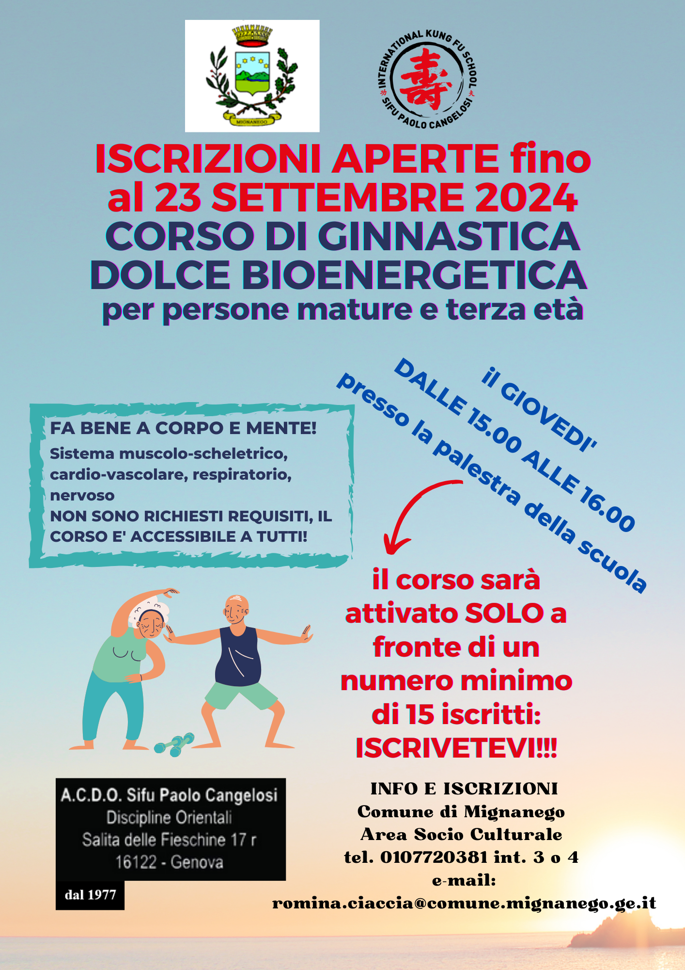 #Terza età 03/10/2023 Ginnastica dolce Corso di Ginnastica Dolce Bioenergetica per persone mature e terza età LEGGI TUTTO